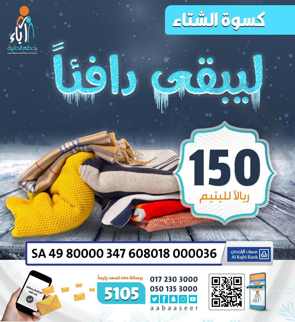 كسوة الشتاء مشروع موسمي تنفذه الجمعية سنويا مع بداية دخول فصل الشتاء، وذلك للتخفيف من معاناة الأيتام لمواجهة برودة الأجواء ...